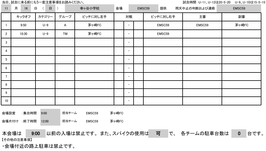 11月16日(日)会場:幸ヶ谷小学校 提供:EMSC59 雨天中止の判断および連絡:EMSC59